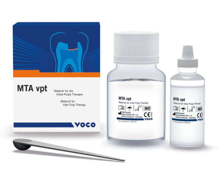 MTA vpt bietet ein preisattraktives Biomaterial für den alltäglichen Einsatz an, dass speziell auf die Versorgung der Kronenpulpa abgestimmt ist und optimal im Rahmen der Vitalen Pulpa Therapie (VPT) bei tiefen kariösen Läsionen oder Traumata ...