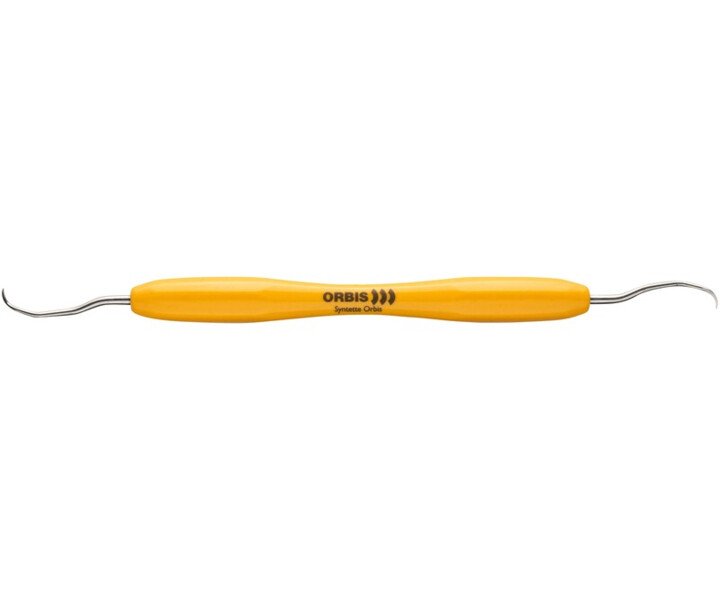 Doppelendige Parodontologie-Handinstrumente mit farbcodiertem, ergonomisch geformtem Silikongriff. Die Modellnummer des Instruments ist per Laser in den Instrumentenschaft eingraviert. Die Syntette steht für die Synthese aus zwei Küretten und ...